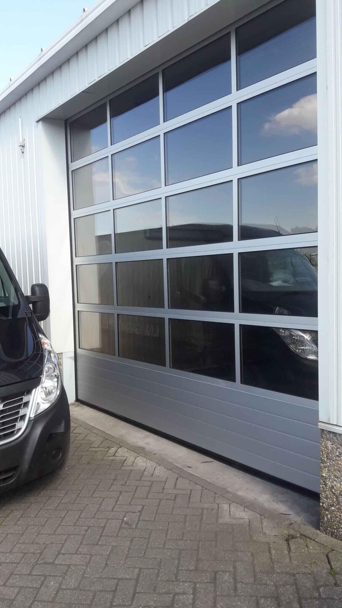 Robuuste bedrijfsdeuren, leverbaar in beglaasde secties met geanodiseerd aluminum of van 40 mm dikke, geïsoleerde aluminium of stalen sandwichpanelen met een kern van polyurethaan, al dan niet voorzien van vingerklembeveiliging. De overheaddeuren zijn gepoedercoat leverbaar in elke gewenste RAL-kleur, desgewenst voorzien van uw bedrijfslogo. Ook zijn de deuren leverbaar met isolerende beglazing. Voor onder meer distributiecentra leveren wij een bijzonder snel te monteren dockdeur.